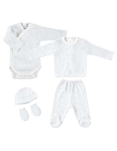 Complementos de regalo SET REGALO 100% ALGODÓN ESTAMPADO 0-6 MESES DUFFI 0967 DUFFI DUF0967 5 PIEZAS: CHAQUETITA, GORRO, POLAINA, BABERO, MANOPLAS View