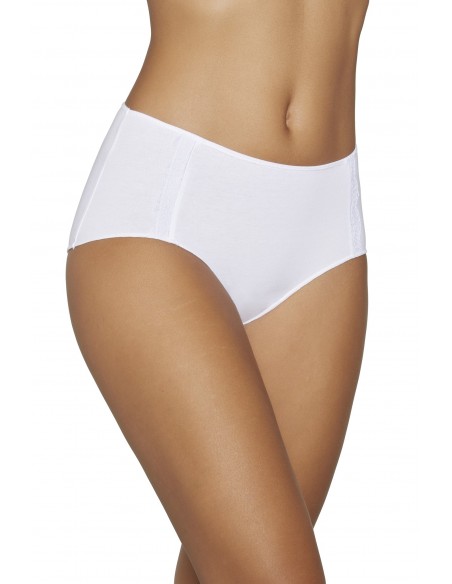 Braga midi en tejido Cotton Nature. Las fibras naturales de este material aportan un extra de suavidad a la prenda. Sus acabados con costuras planas invisibles evitan las marcas y favorecen una mayor adaptabilidad y un ajuste ergonómico perfecto. Modelo básico de gran confort pensado para el día a día. Decoradas con blonda en los laterales. Confeccionadas con material antialergénico. Cotton nature