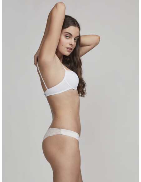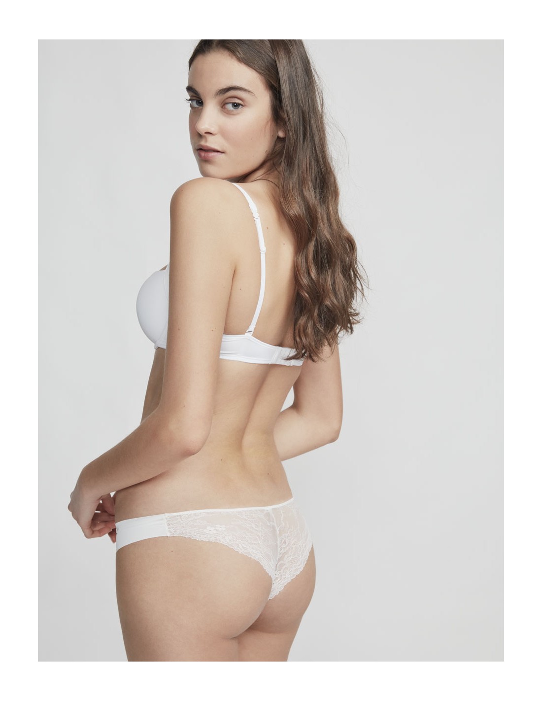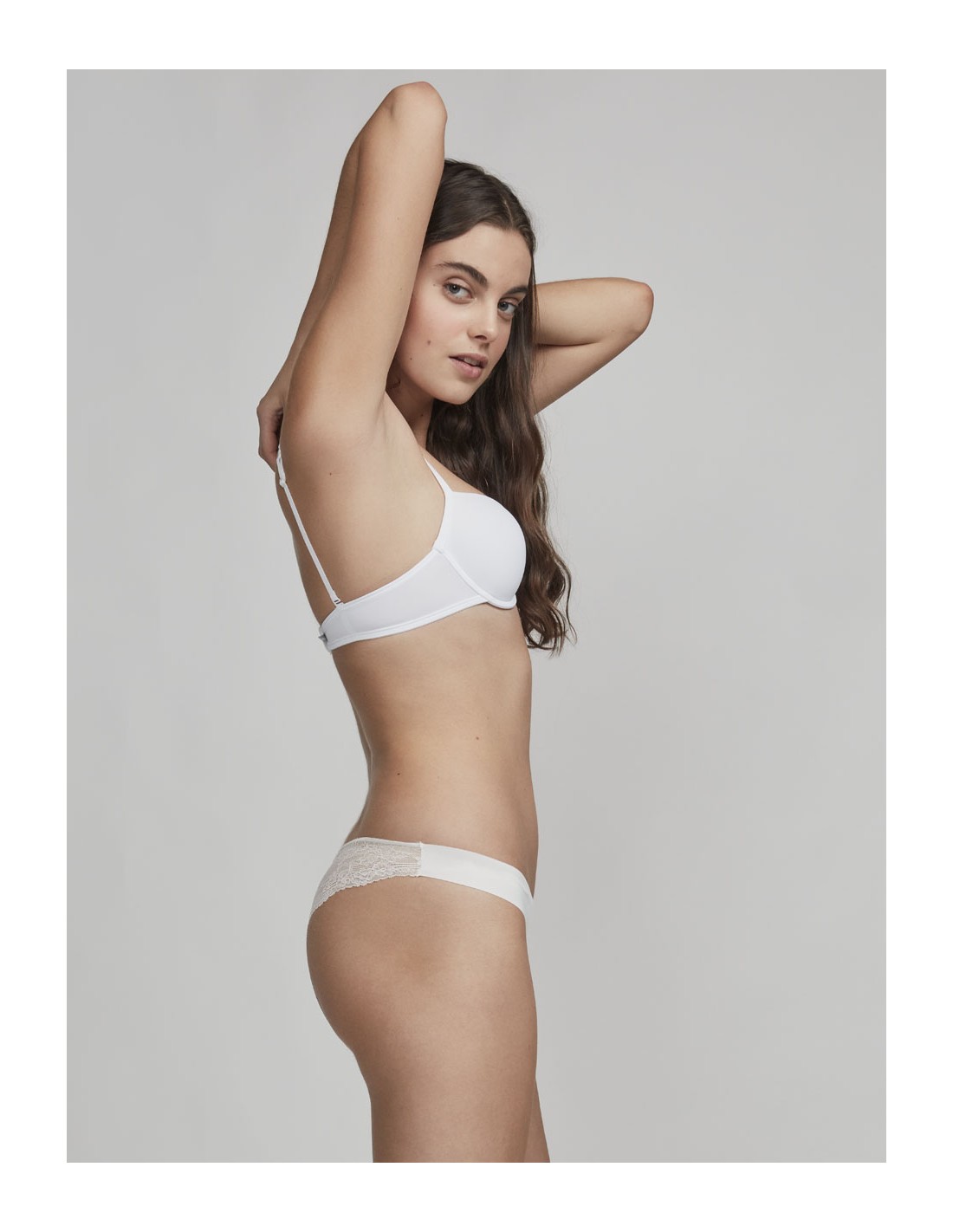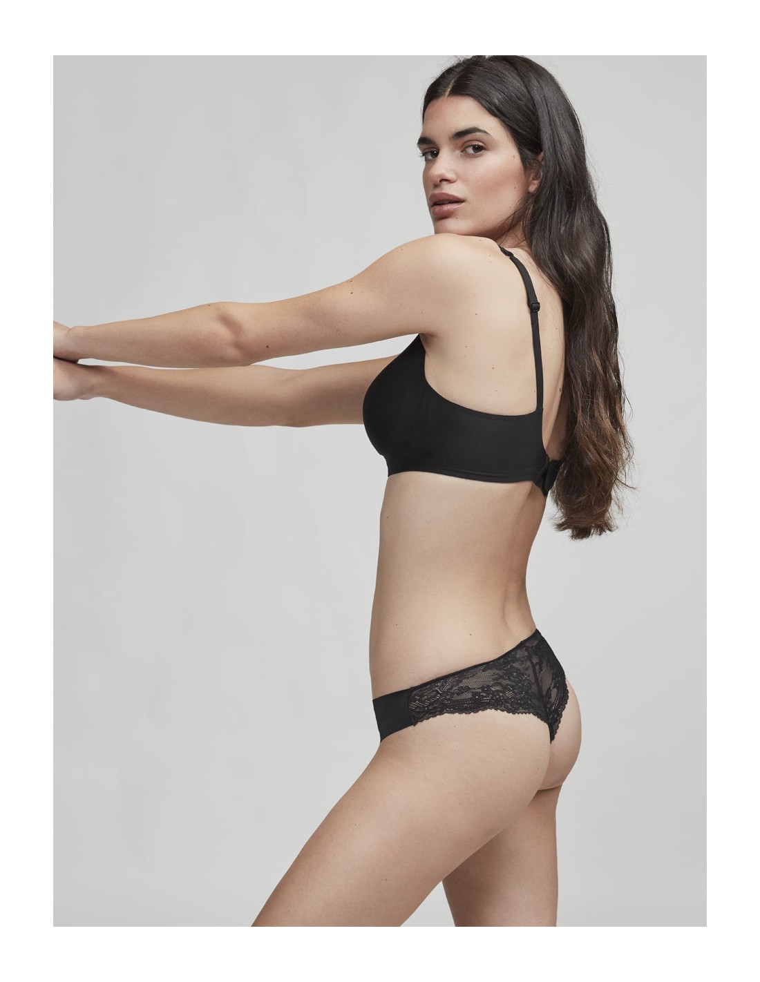 Braguita brasileña en tejido de microfibra extrasuave y trasero de encaje, cortada a láser para evitar marcas.