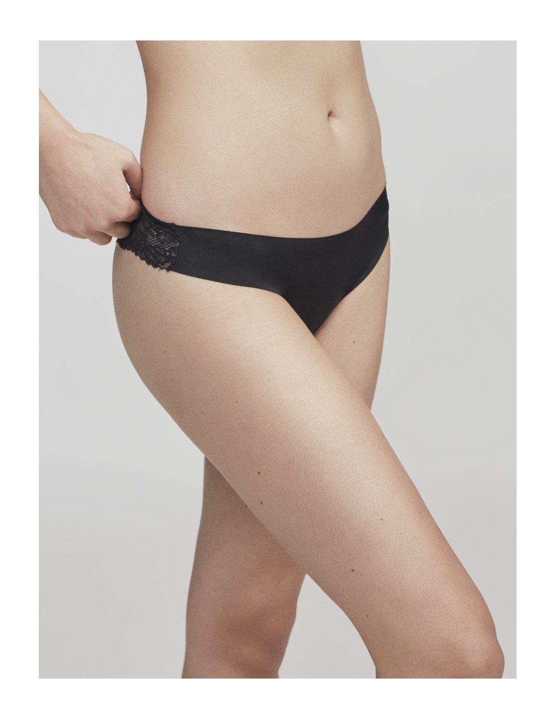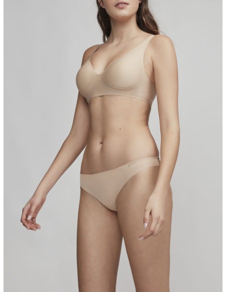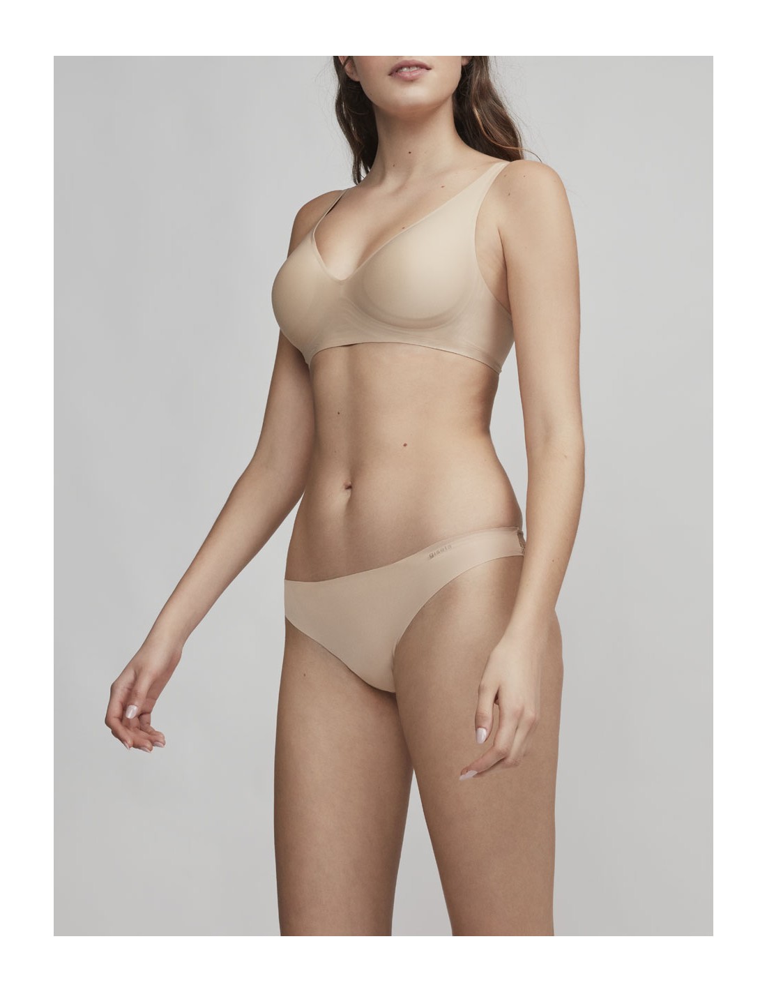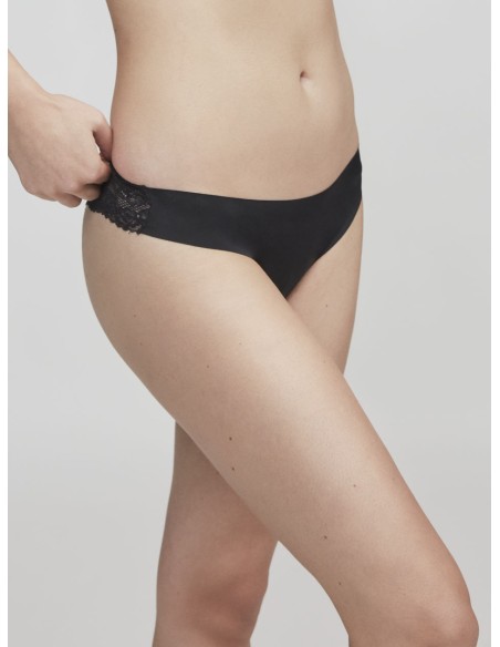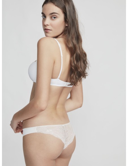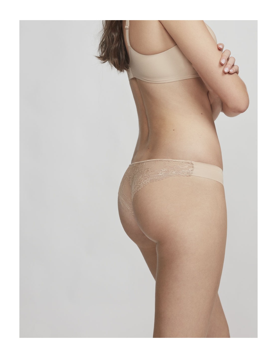Braguita brasileña en tejido de microfibra extrasuave y trasero de encaje, cortada a láser para evitar marcas.
