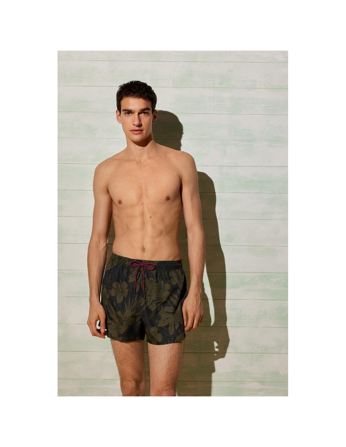 Bañador estampado corto de secado rápido. Tejido Ligero. Cordón en cintura con el que ajustar la prenda a la silueta. Suspensor interior en suave malla para un confort total. Bolsillos laterales y traseros con evacuadores de agua.
