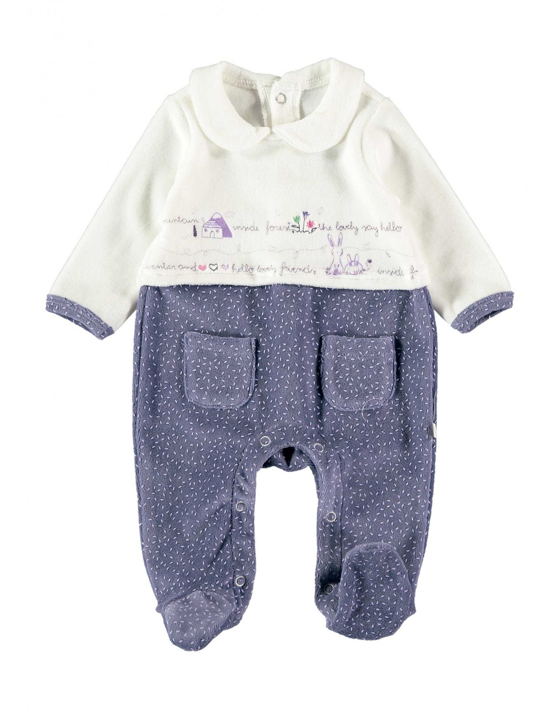 Pelele de terciopelo manga larga, abotonado por detrás.
