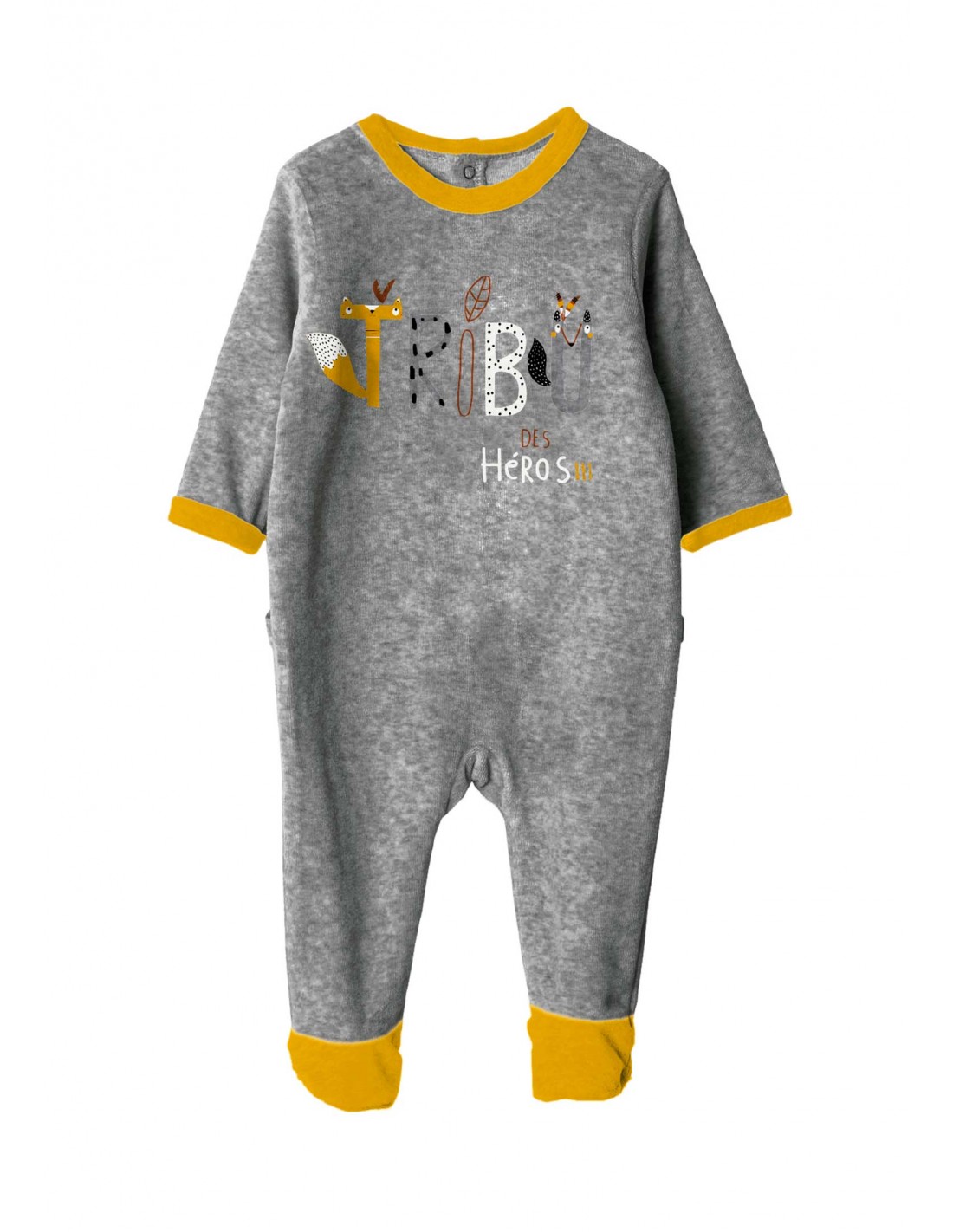 Pelele de terciopelo manga larga, abotonado por detrás.