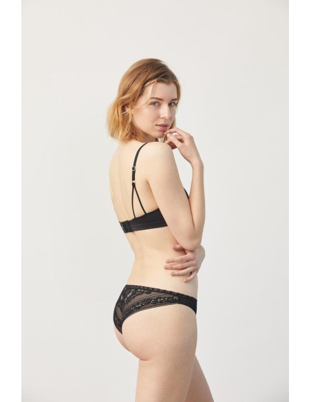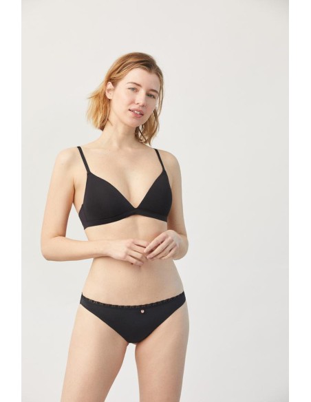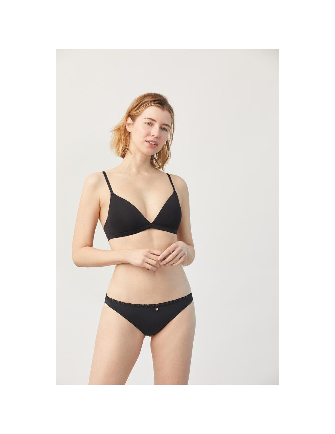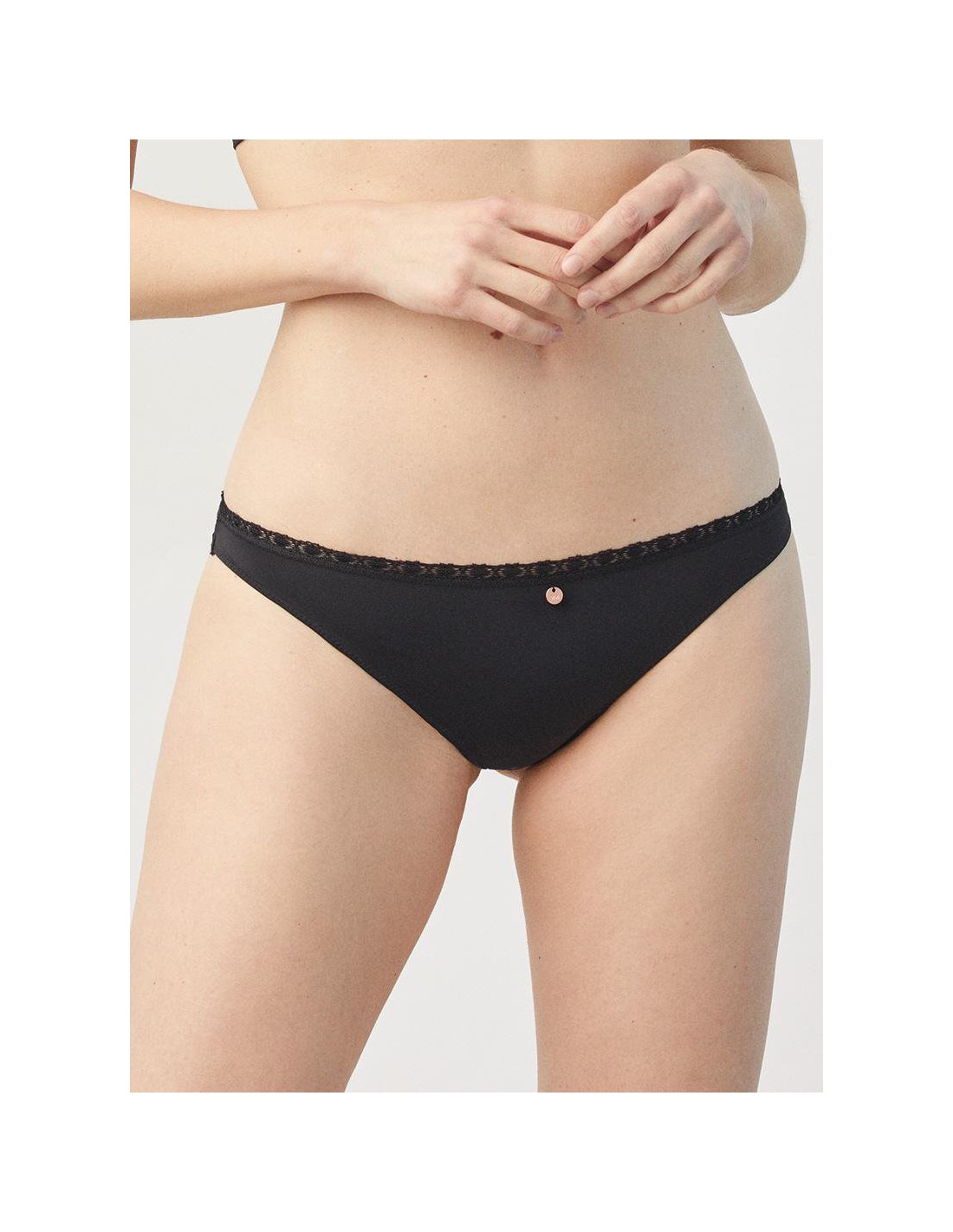 Braga brasileña tejida en suave microfibra. Mix de materiales que combina opacidad con la transparencia del encaje de apariencia bordada en la parte trasera. Costuras planas para mayor confort. Perfecta para el día a día. Combínala con una camiseta a juego para crear tu set perfecto.