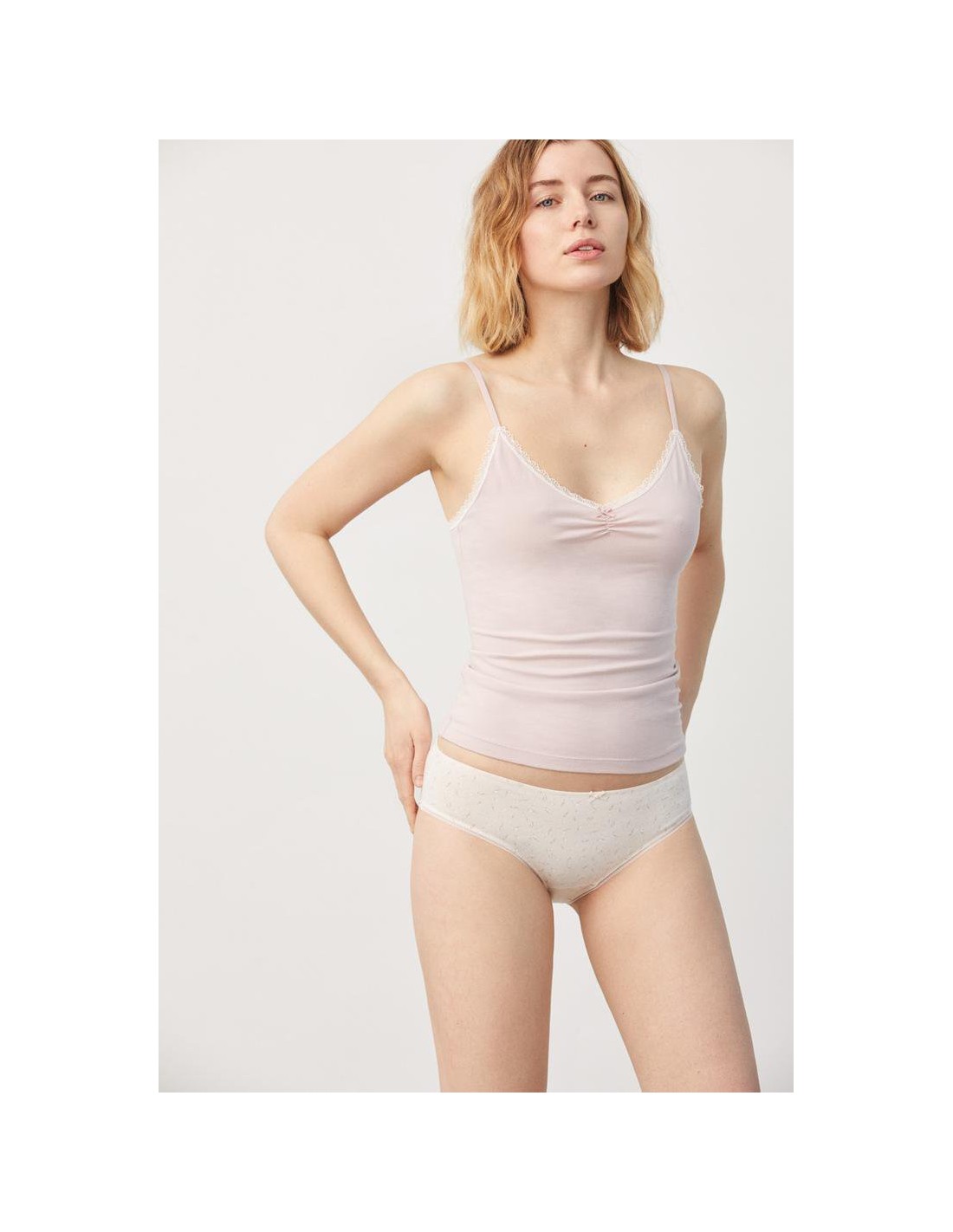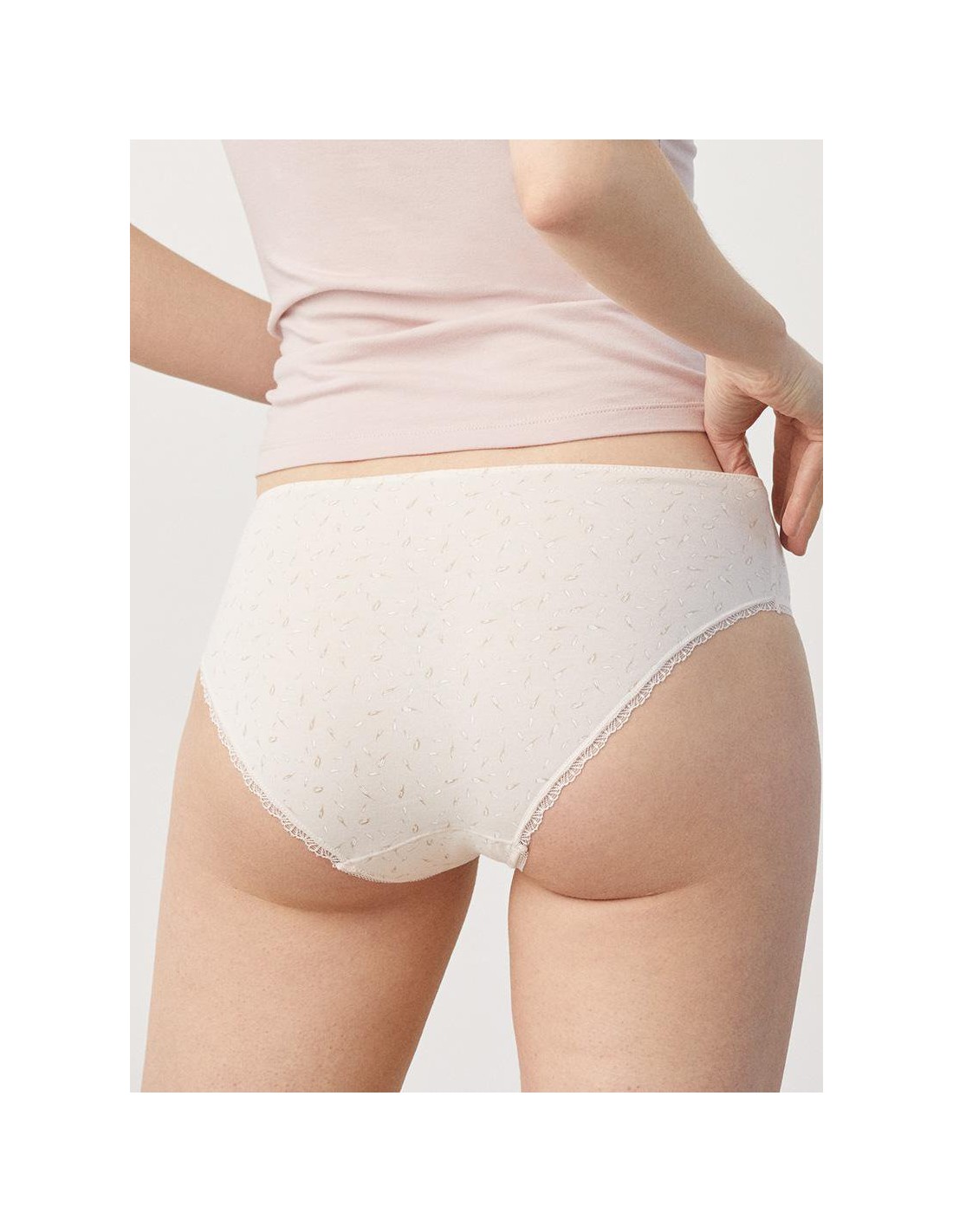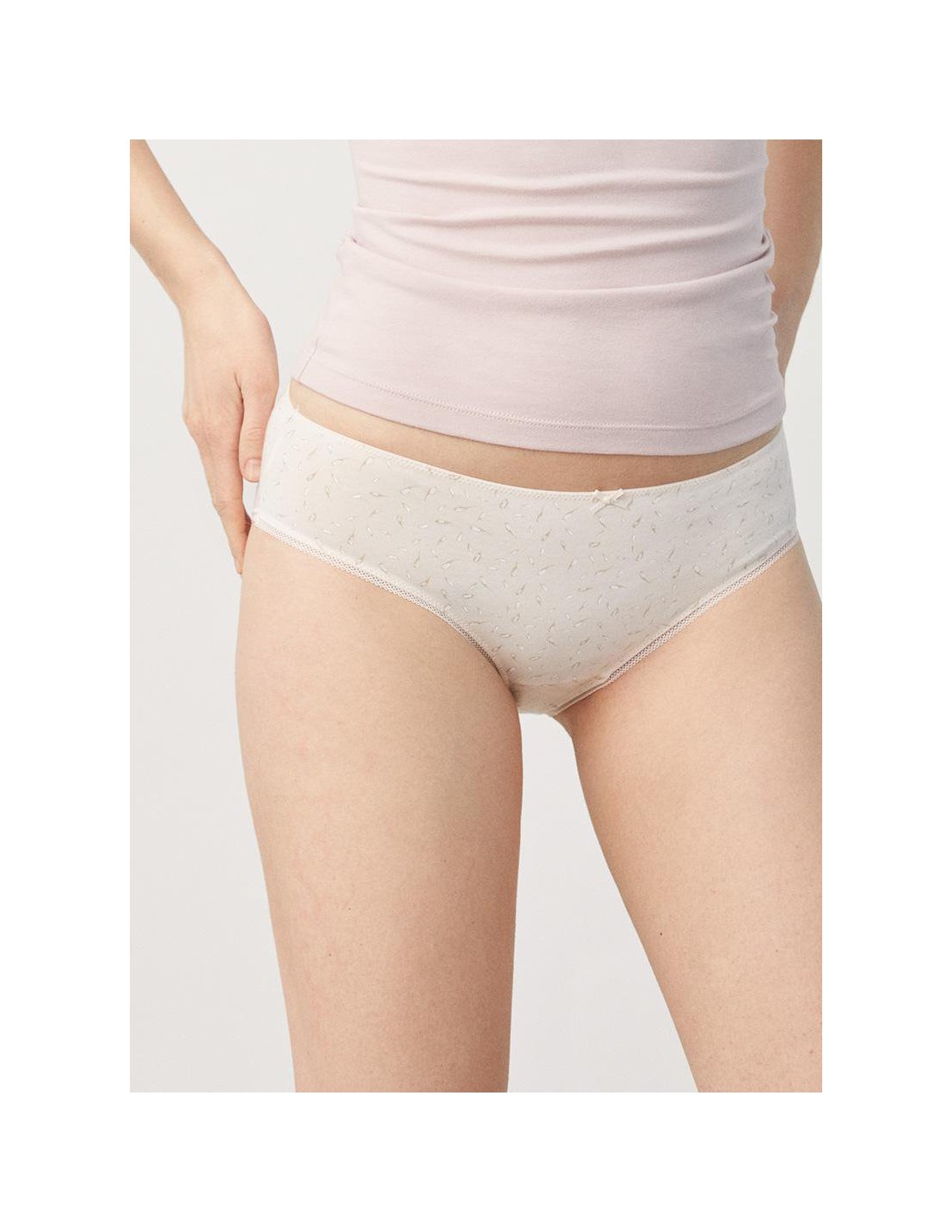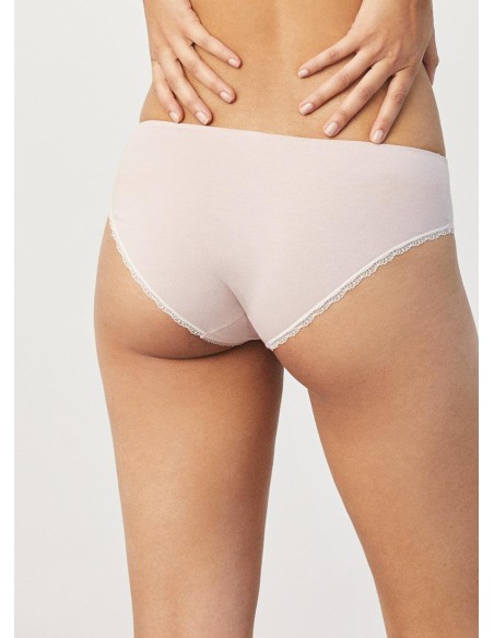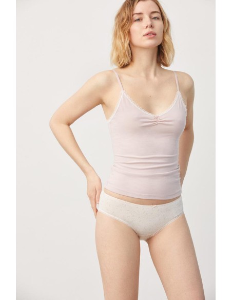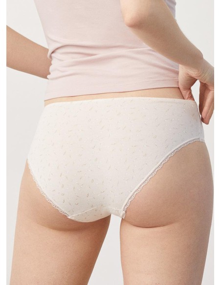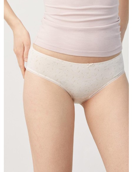 Braga midi tejida en algodón natural. Las fibras naturales de nuestro Cotton Nature aportan suavidad y elasticidad a partes iguales. Costuras planas para una mayor comodidad. Diseño y confort diario en esta prenda sutilmente decorada con blonda y detalle en lazo de satén. Combínala con la camiseta a juego para crear tu set perfecto.