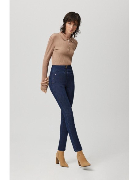 Jeggings, leggings vaqueros para mujer. Pantalones denim con detalle de falsos ribetes y bolsillos simulados en la parte delantera, de ajuste perfecto y cómodo. Incorpora cremallera frontal para mayor comodidad y a conjunto de los ribetes para un mejor estilo.