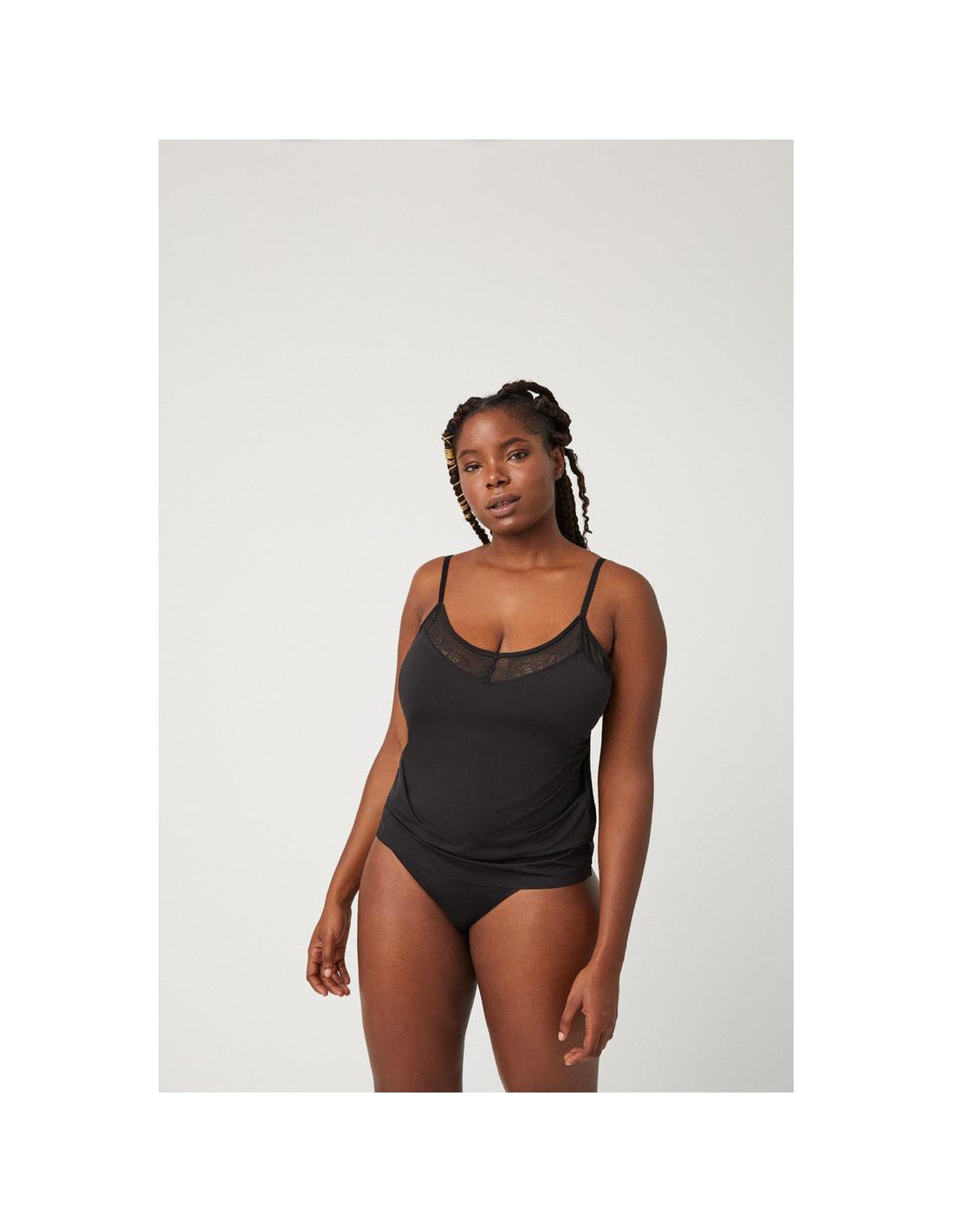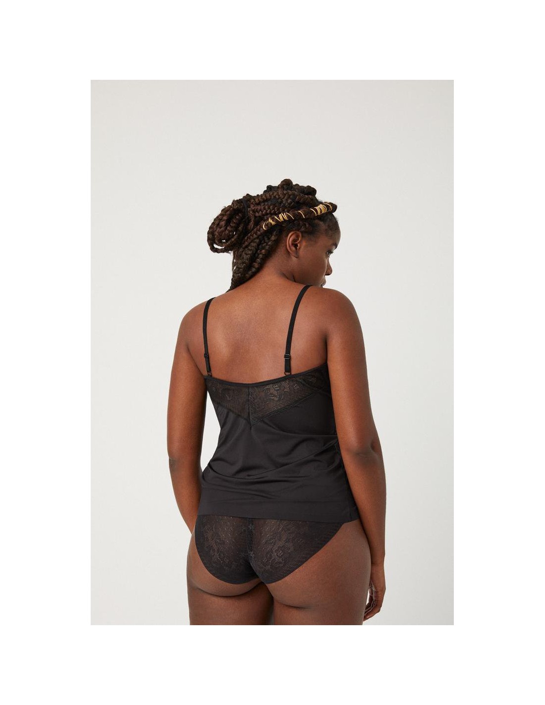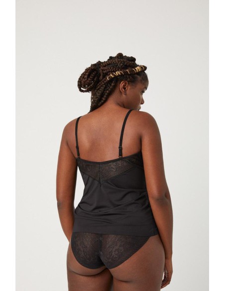 Camiseta de tirantes tejida en suave microfibra y decorada con detalles en encaje floral. Tirantes regulables para ajustar la altura de la prenda a tu silueta. Elige una braguita de la colección Special You y completa tu set lencero.