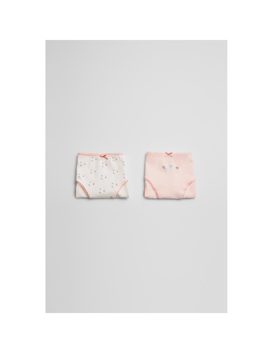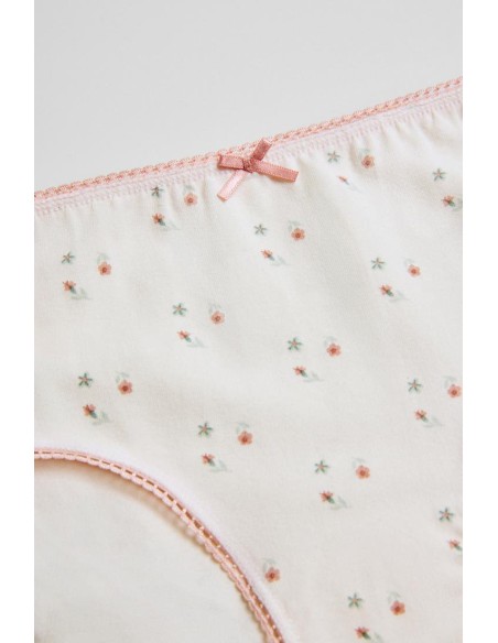 Pack de 2 braguitas de algodón para niña. Combina una braguita de estampado floral y otra rosa. De absoluta tendencia. Confeccionadas en algodón, las fibras naturales de este material aportan suavidad, adaptabilidad y comodidad que se alinean en la nueva propuesta de ropa interior para niña.