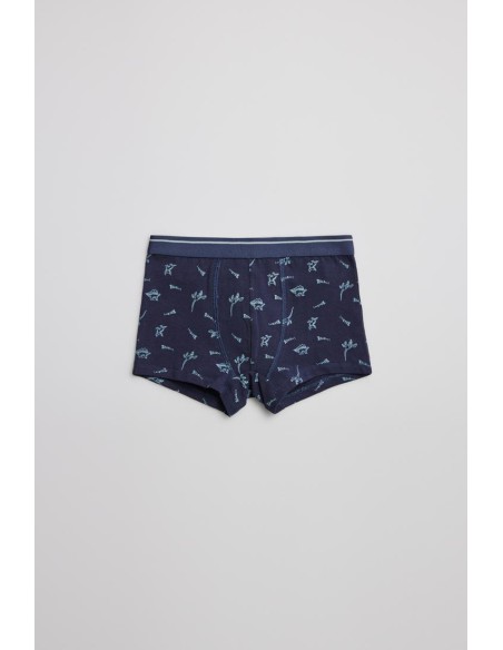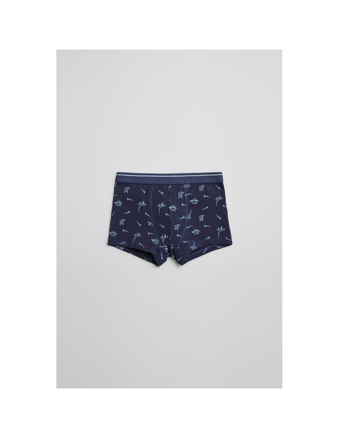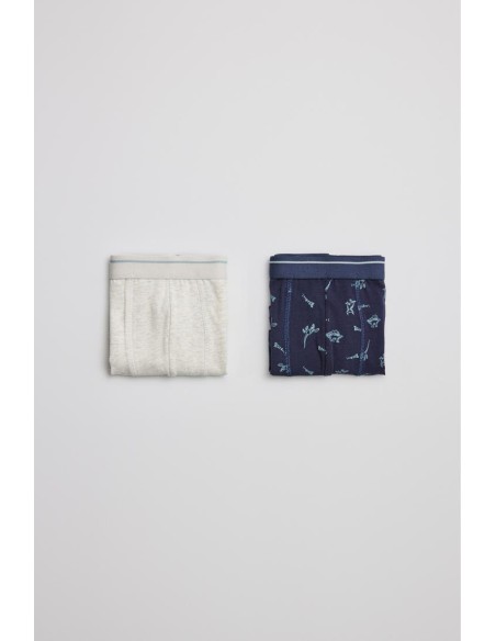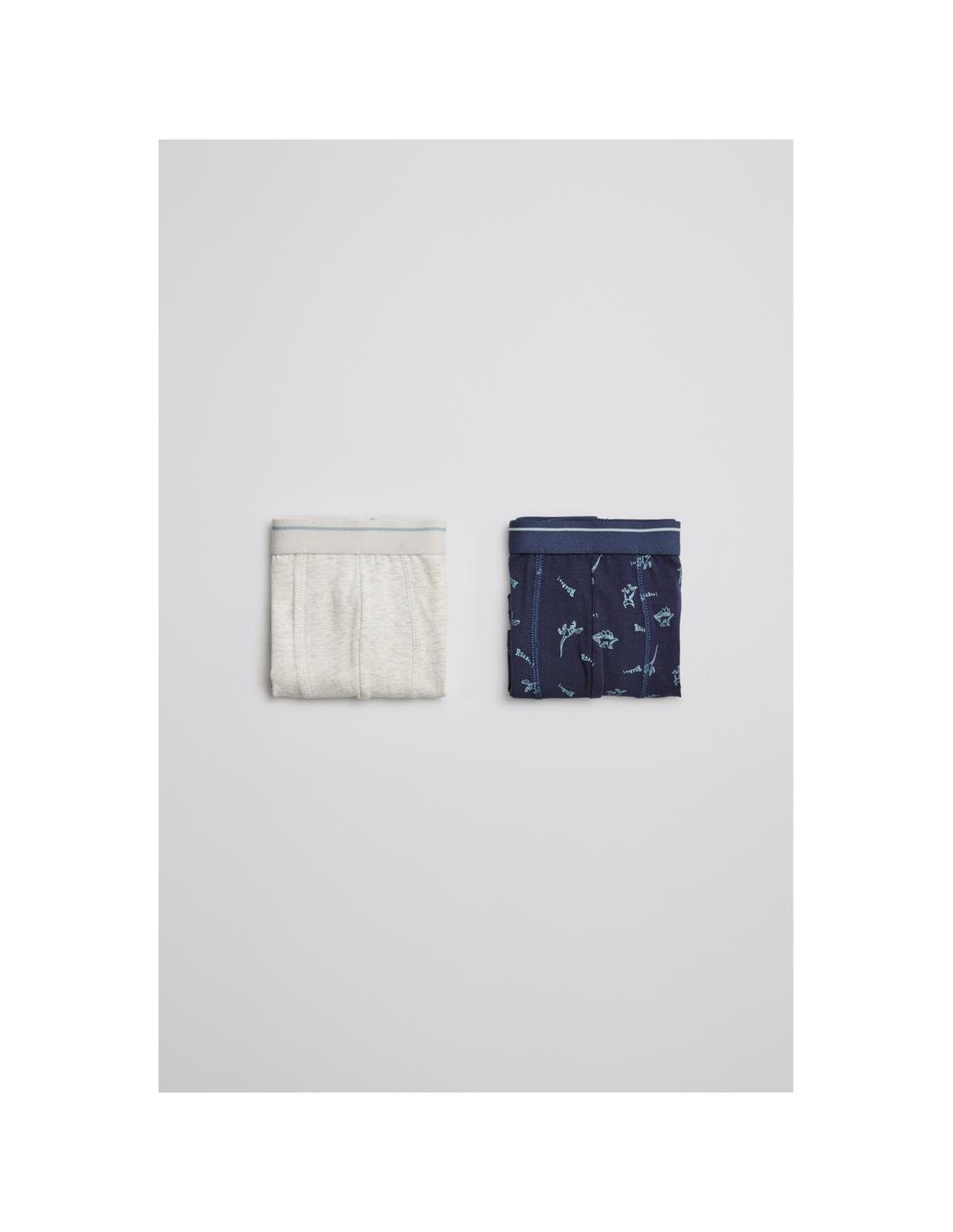 Pack de 2 calzoncillos bóxer de algodón. El estilo de la era mesozoica y los dinosaurios...¿hay algo que les guste más a los niños? De absoluta tendencia. Tejidos en algodón, las fibras naturales de este material aportan suavidad, adaptabilidad y comodidad que se alinean en la nueva propuesta de ropa interior para niño.