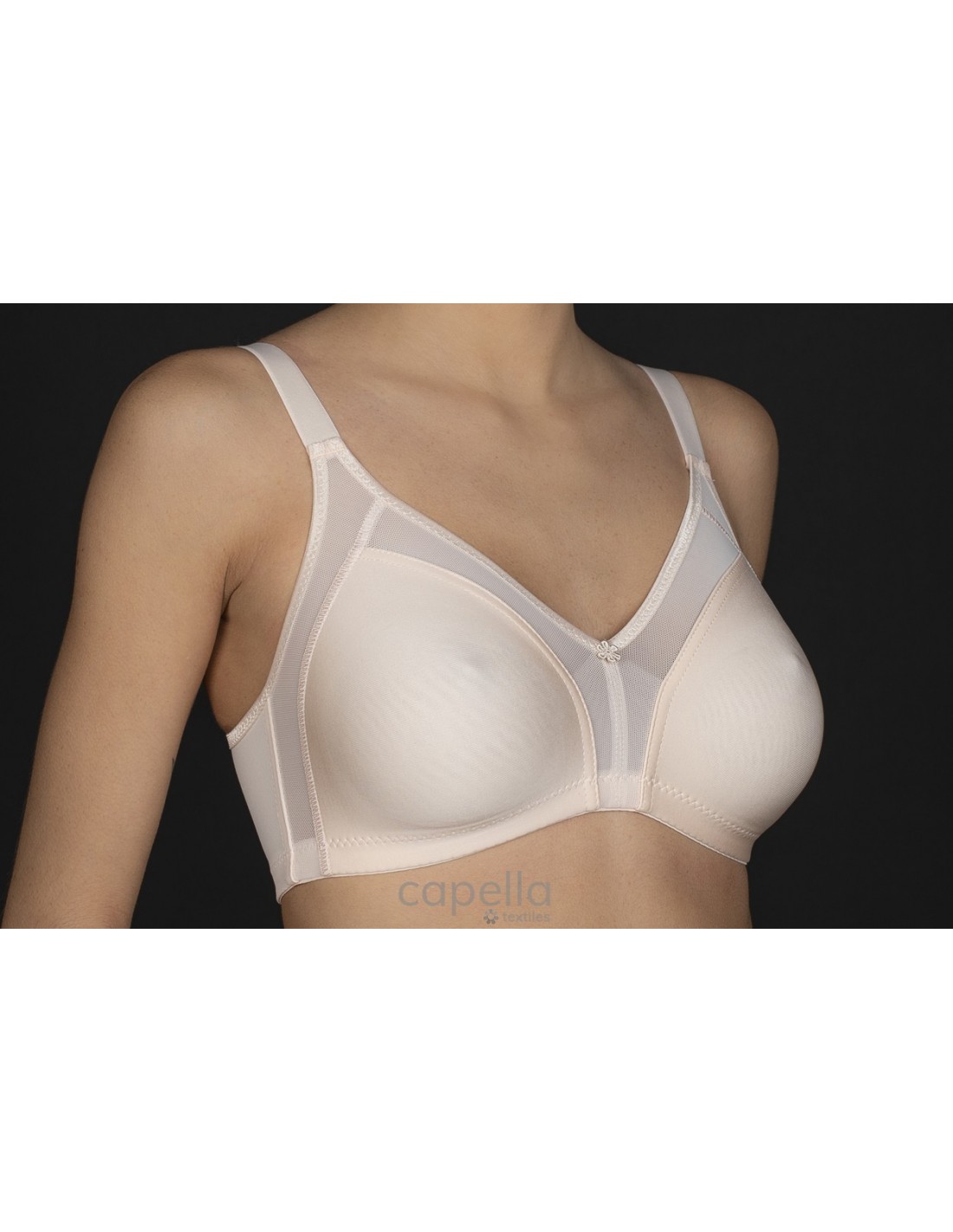 SUJETADOR SIN  AROS, CON DOBLE CAPA DE MICROFIBRA SATINADA E INSERCIONES DE TUL.