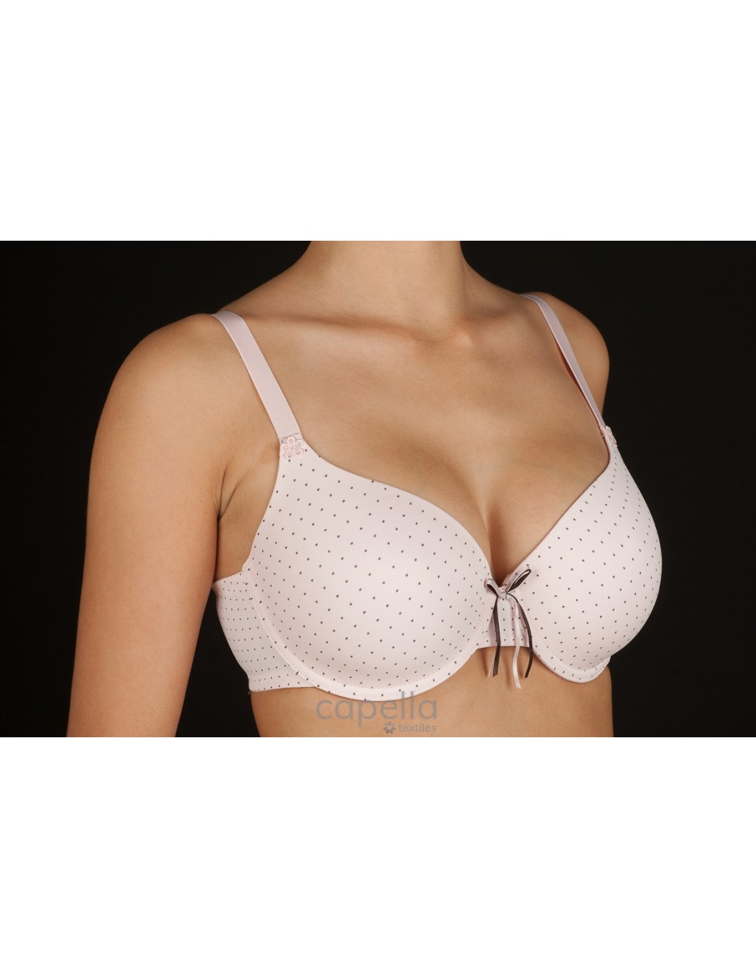 SUJETADOR CON AROS Y COPA DE RELLENO CON TEJIDO ESTAMPADO DE PUNTOS.