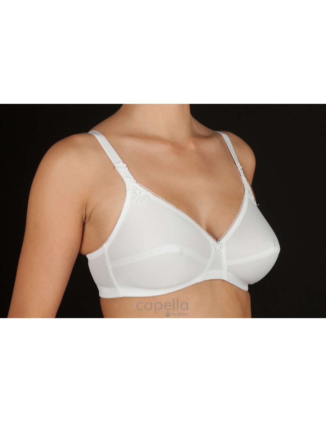 CLÁSICO SIN AROS FABRICADO EN TEJIDO SIMPLEX PARA MAYOR SUJECIÓN Y CON ADORNO DE GUIPUR EN EL TIRANTE.