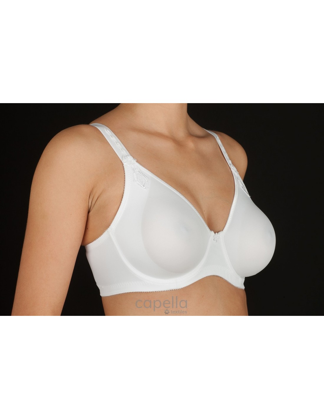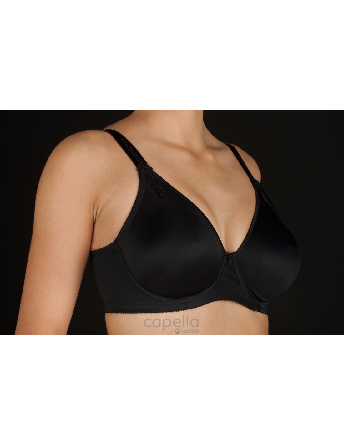 CLÁSICO DE MICROFIBRA PREFORMADA, CON AROS Y CON ADORNO DE GUIPUR EN TIRANTE. REFUERZO LATERAL.