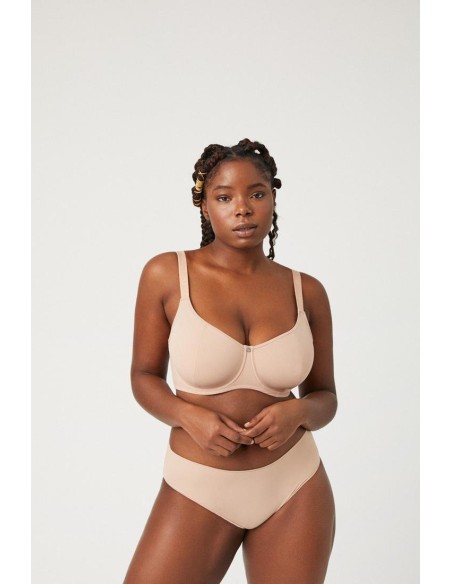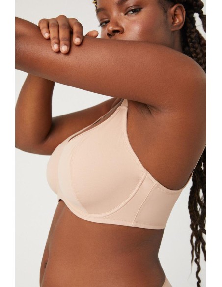 Sujetador en el que todos los acabados están diseñados para asegurar la máxima sujeción sin perder estilo: aros y microfibra reforzados, tirantes y laterales anchos y cierre con hasta 4 posiciones con nuestro característico forro interior. Sus costuras juegan un papel fundamental en el efecto reductor.