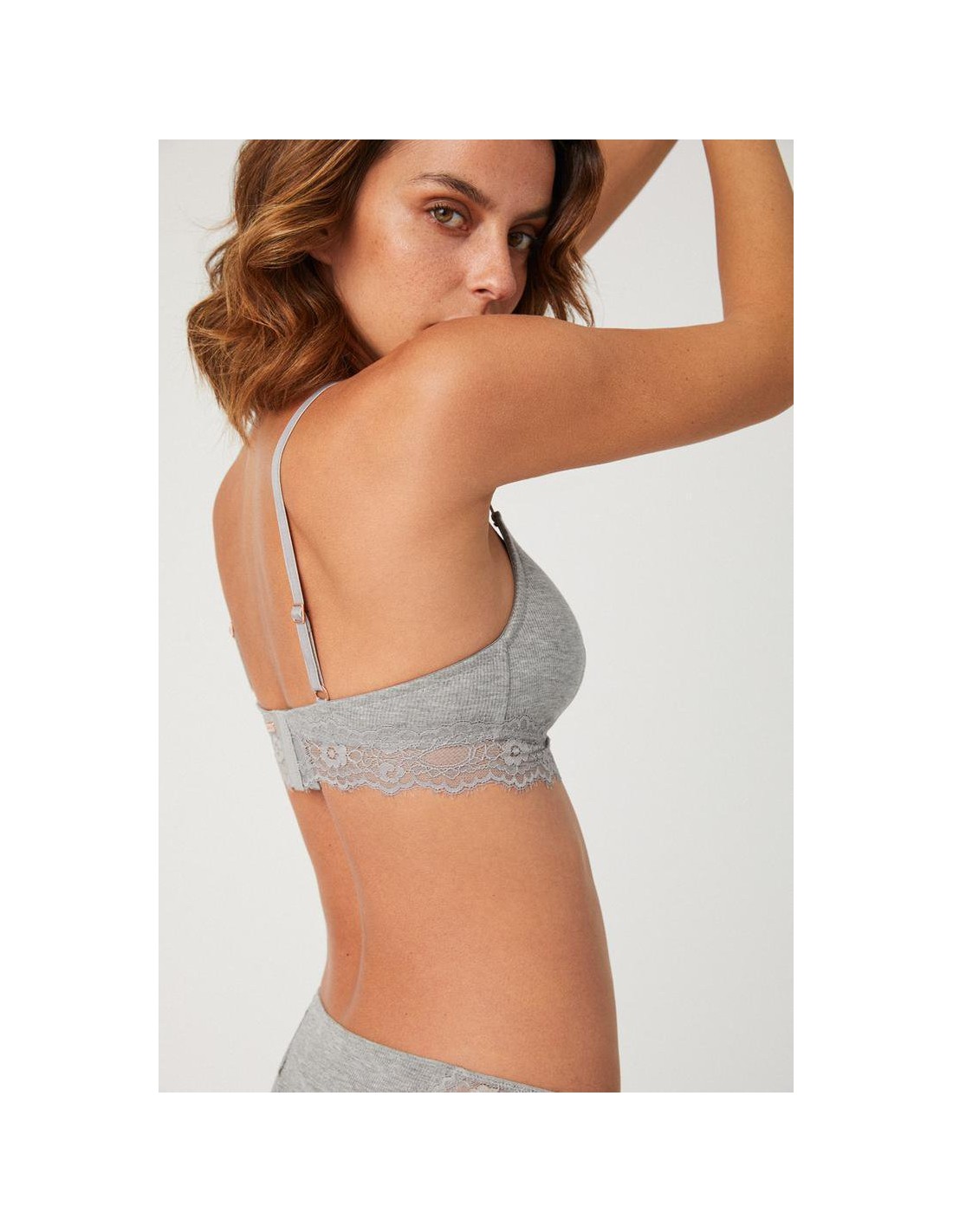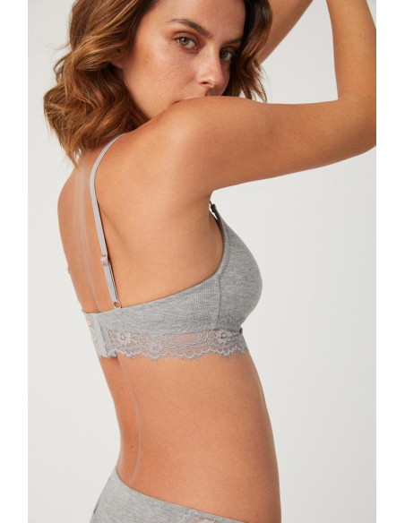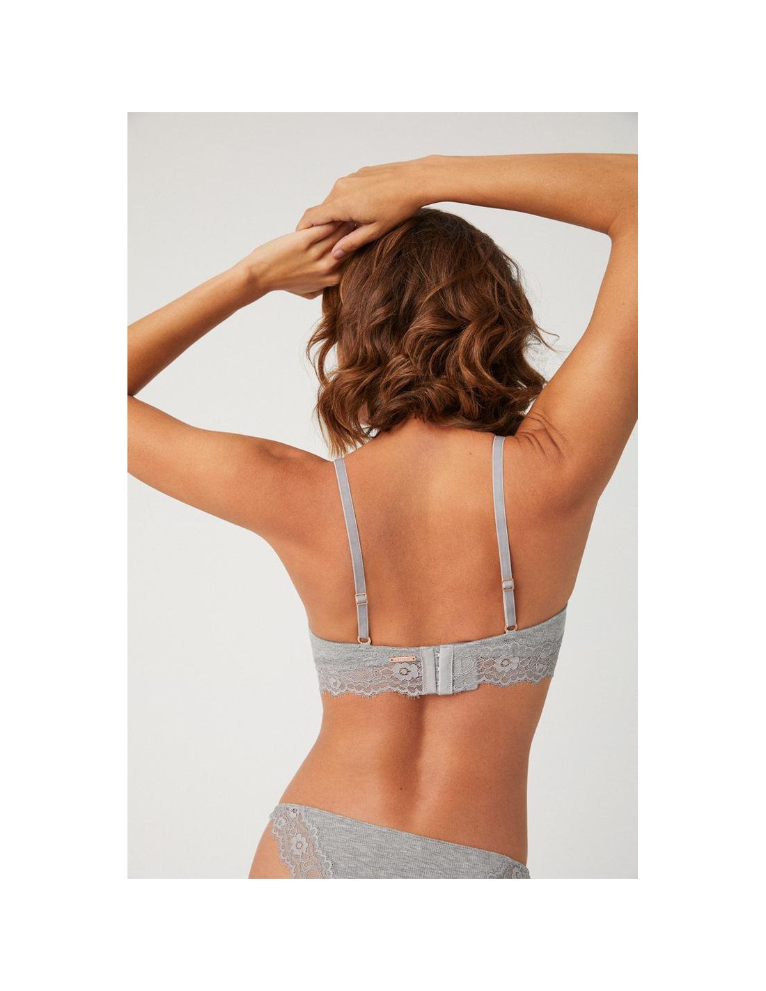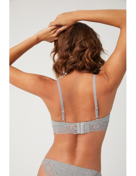 Máxima delicadeza en este diseño de tacto suave y detalles en encaje. Su cierre ancho forrado en microfibra aporta estabilidad sin marcas. Sus reguladores metálicos en oro rosa combinan a la perfección con los colores disponibles.