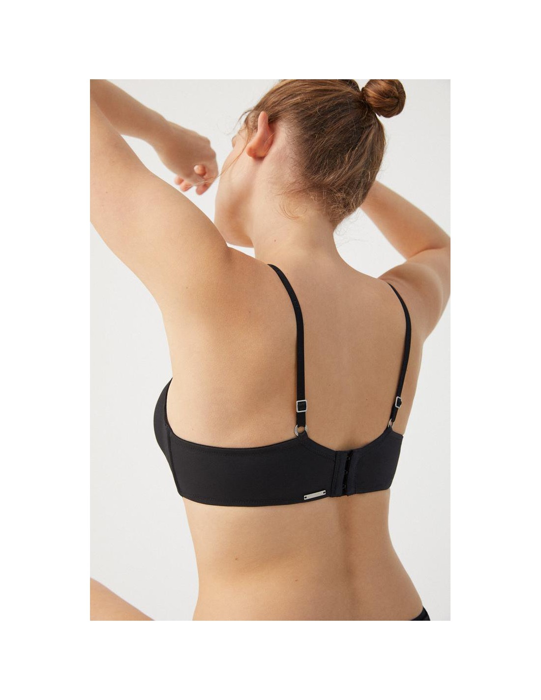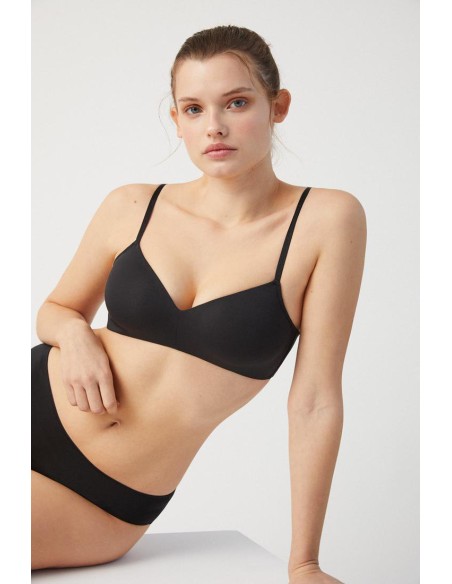 Nueva Colección Essentials. Sujetador básico con interior del cierre forrado con microfibra. Máximo confort que evita rozaduras. Copas continuas, push-up y foam extraíble en un diseño extra cómodo, que culmina en su espalda anatómica.