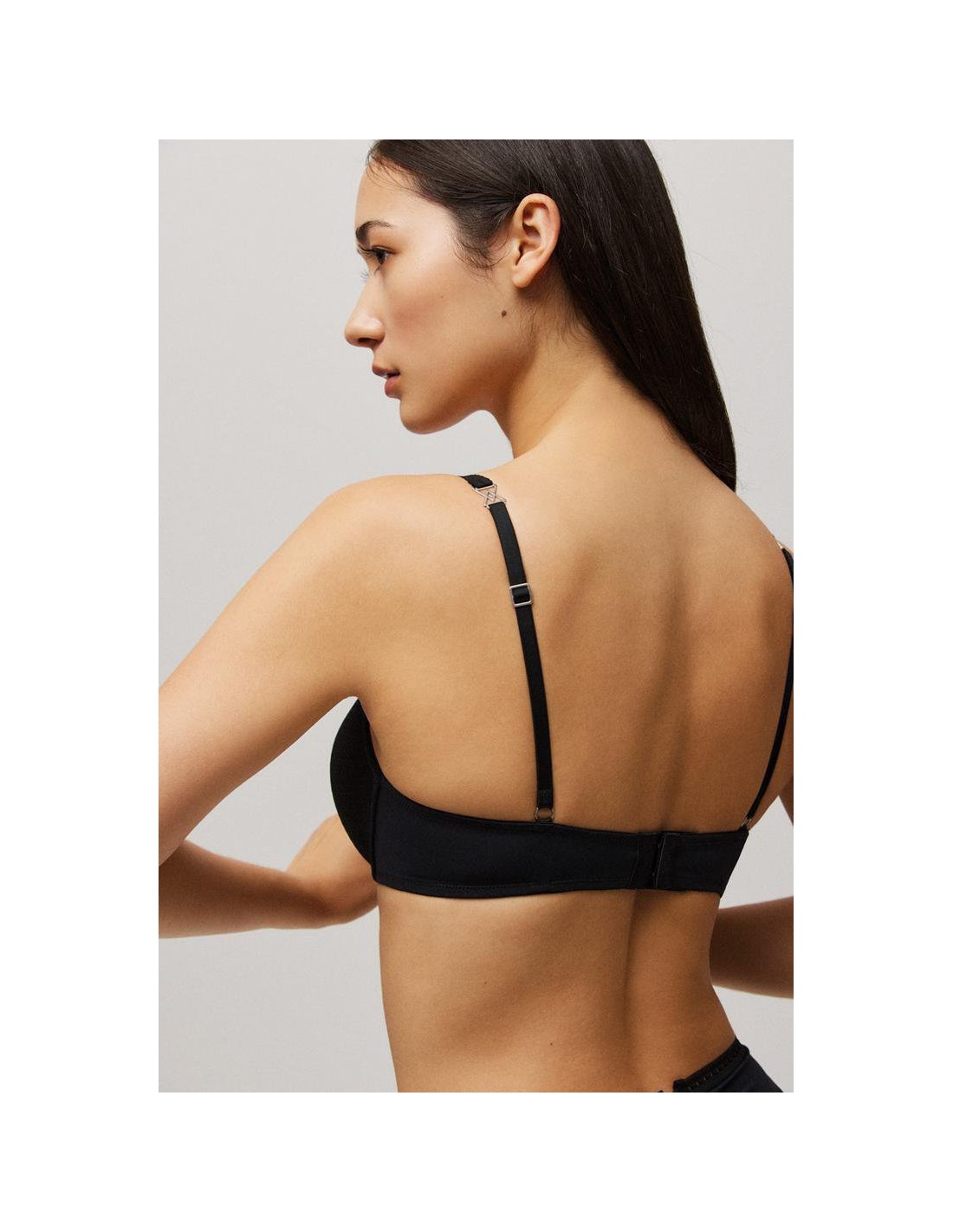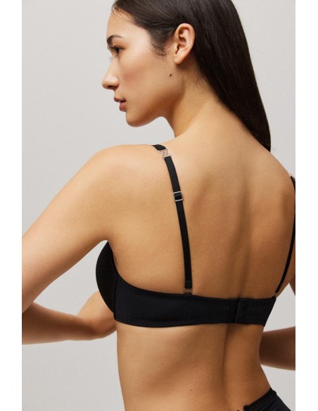 Sujetador push up combinado con tul que proporciona un ajuste perfecto y aporta elegancia al look junto con el adorno de los triángulos en los tirantes ajustables. Los aros ayudan a ajustar la posición del pecho para ensalzar la silueta. Las copas interiores aportan una forma redondeada y centrada al pecho acentuándolo de forma natural, asegurandose de que la pieza encaja perfectamente con cada tipo de cuerpo. Combínalo con unas braguitas a juego de la colección y crea tu look perfecto.