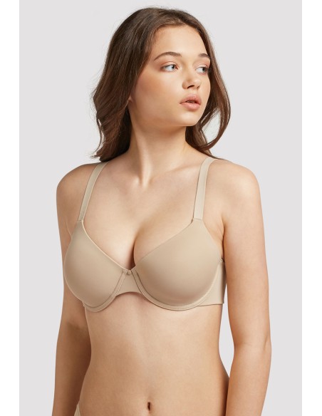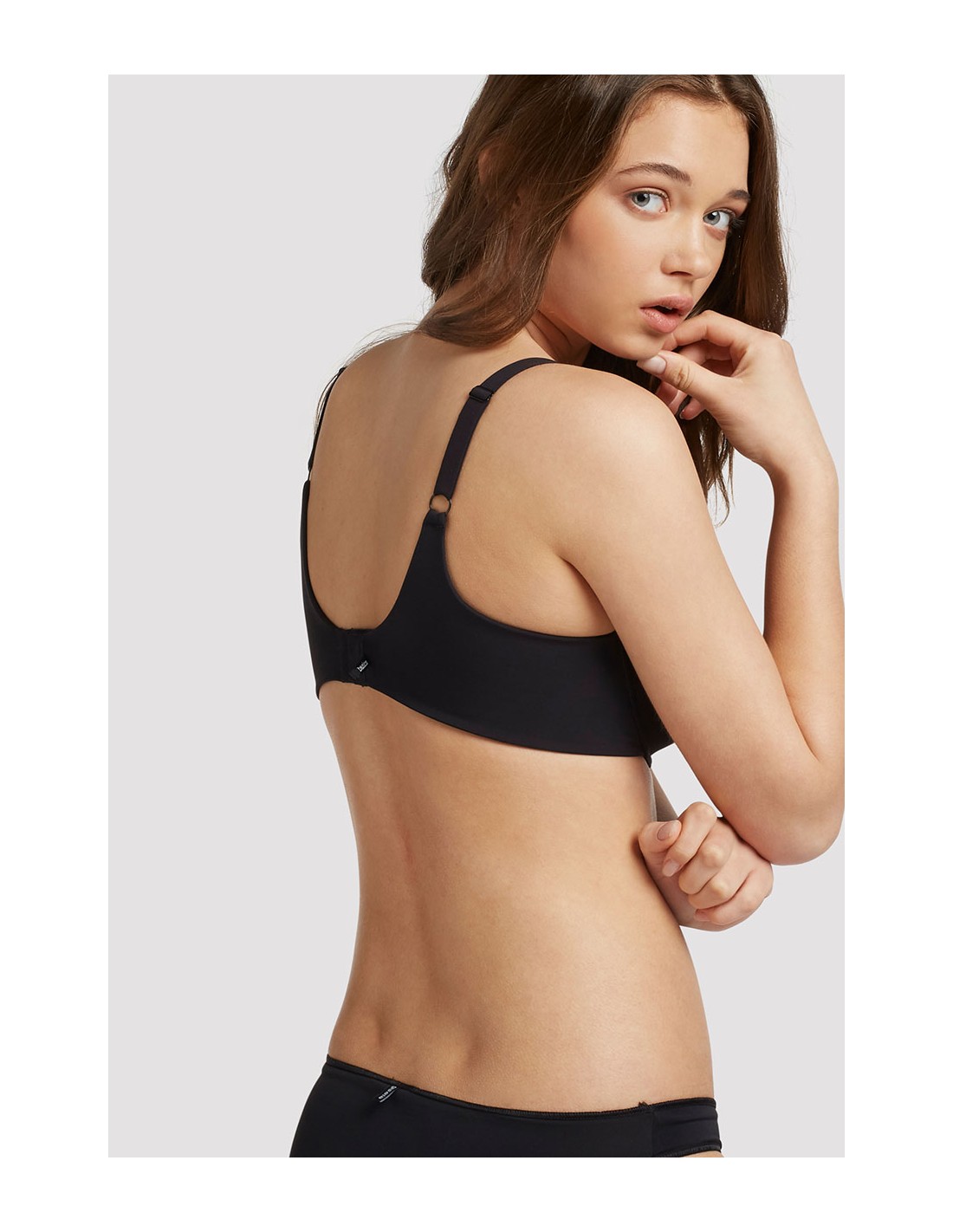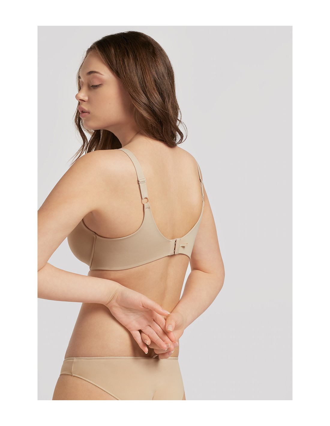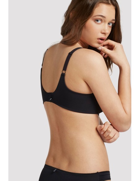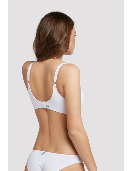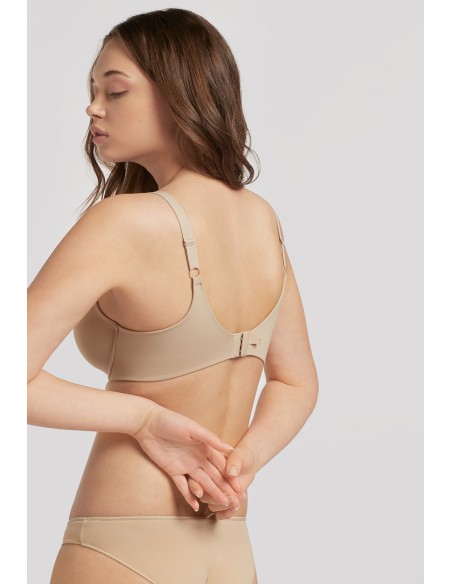 Sujetador capacidad reductor de espalda con aro y foam. Espaldillas anatómicas y acolchadas que reducen el volumen de espalda y acabados invisibles. Detalle de botón decorativo en el centro y cierre trasero de cuatro posiciones.