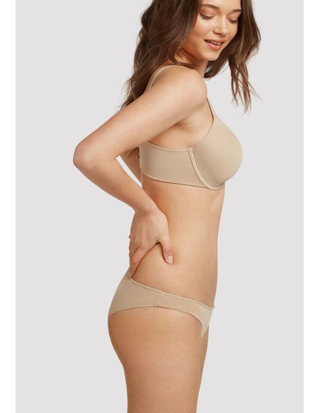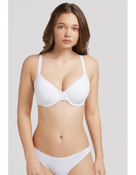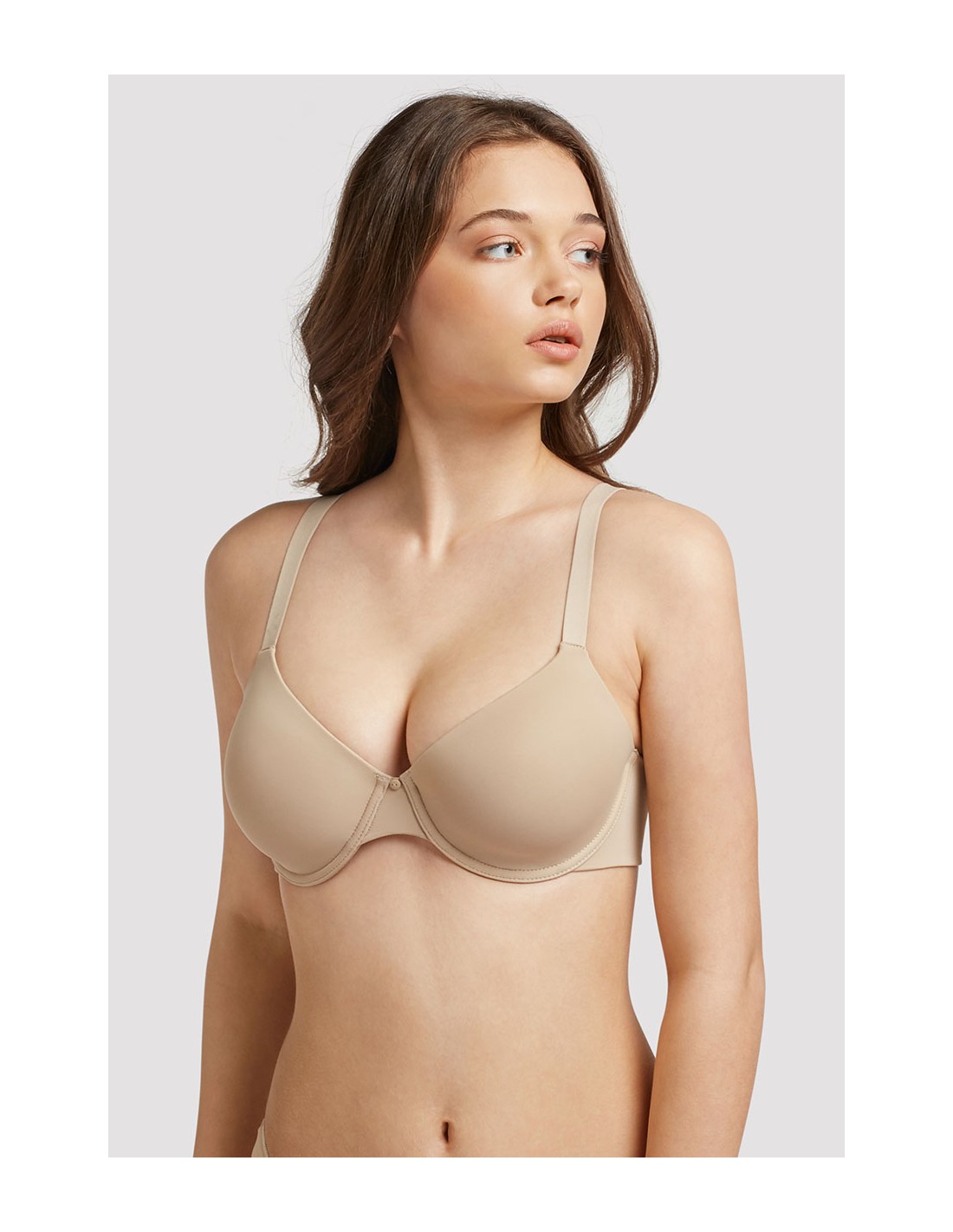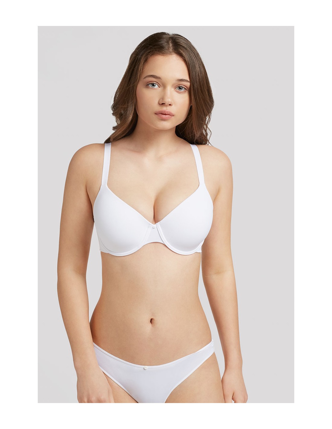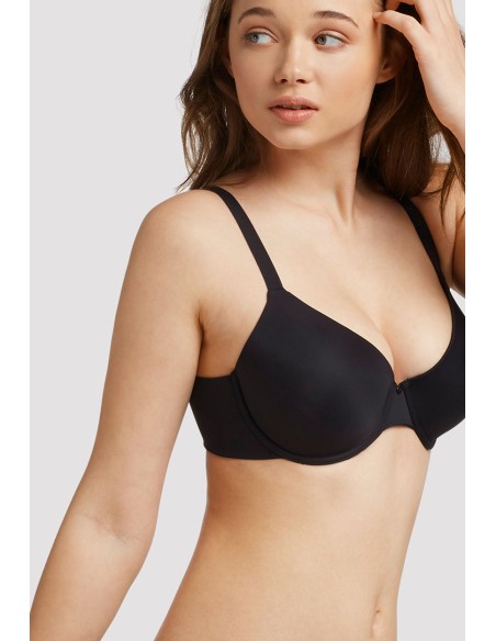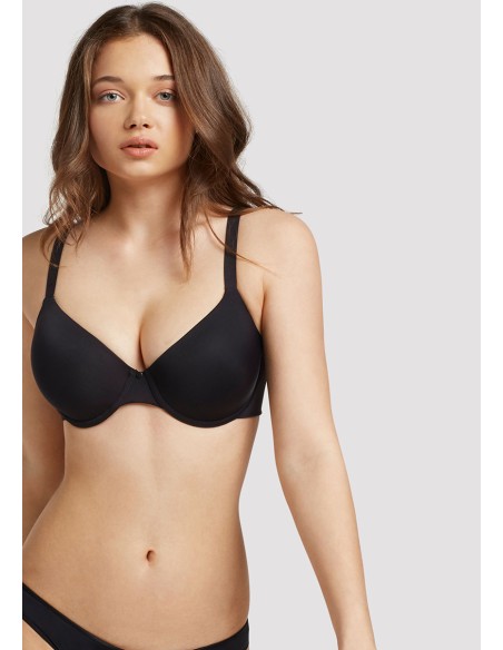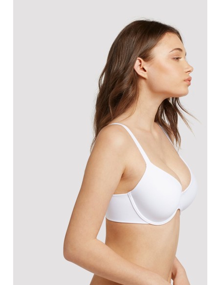 Sujetador capacidad reductor de espalda con aro y foam. Espaldillas anatómicas y acolchadas que reducen el volumen de espalda y acabados invisibles. Detalle de botón decorativo en el centro y cierre trasero de cuatro posiciones.