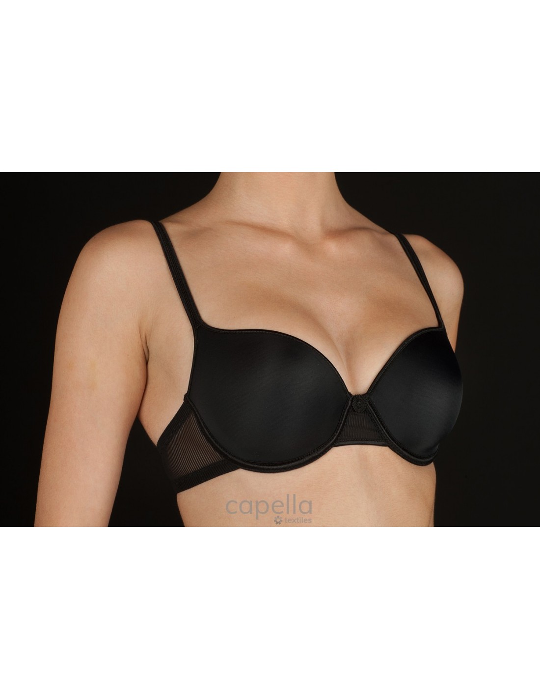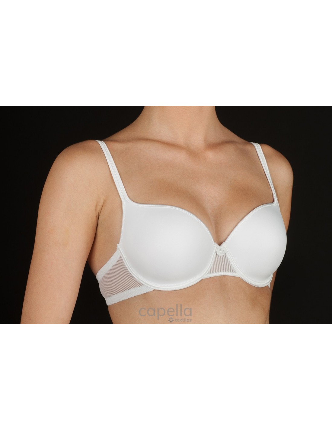 SUJETADOR CON AROS Y COPA DE RELLENO. ESPALDILLA FABRICADA EN ELEGANTE TUL TEJIDO A FINAS RAYAS.