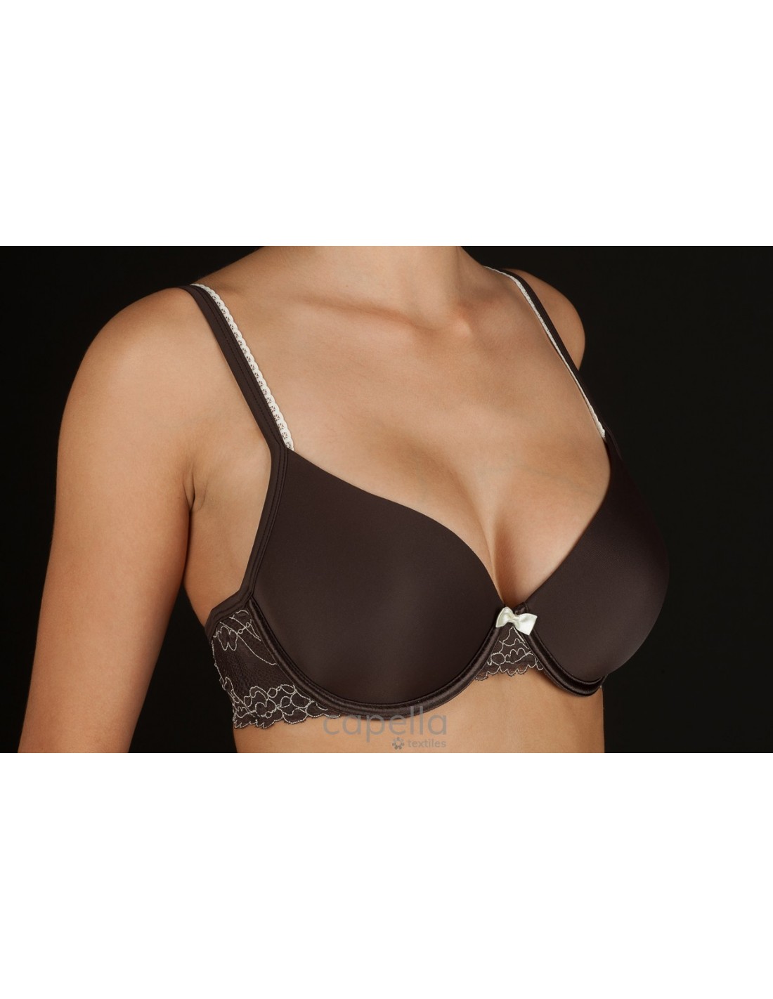 ELEGANTE SUJETADOR CON AROS Y COPA DE RELLENO. ESPALDILLAS EN ENCAJE BICOLOR.